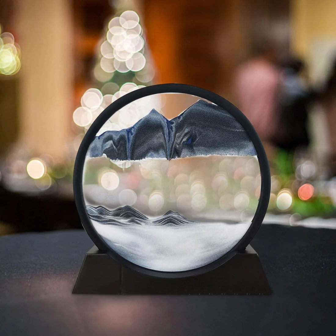 Dedica minutos a contemplar la armoniosa danza de agua y fina arena, creando cautivadores paisajes en 3D. Con la capacidad de girar el panel de vidrio en 360 grados, cada movimiento desencadena la transformación de desiertos, océanos, montañas y más. Cada giro revela patrones únicos, brindándote una experiencia visual excepcional.