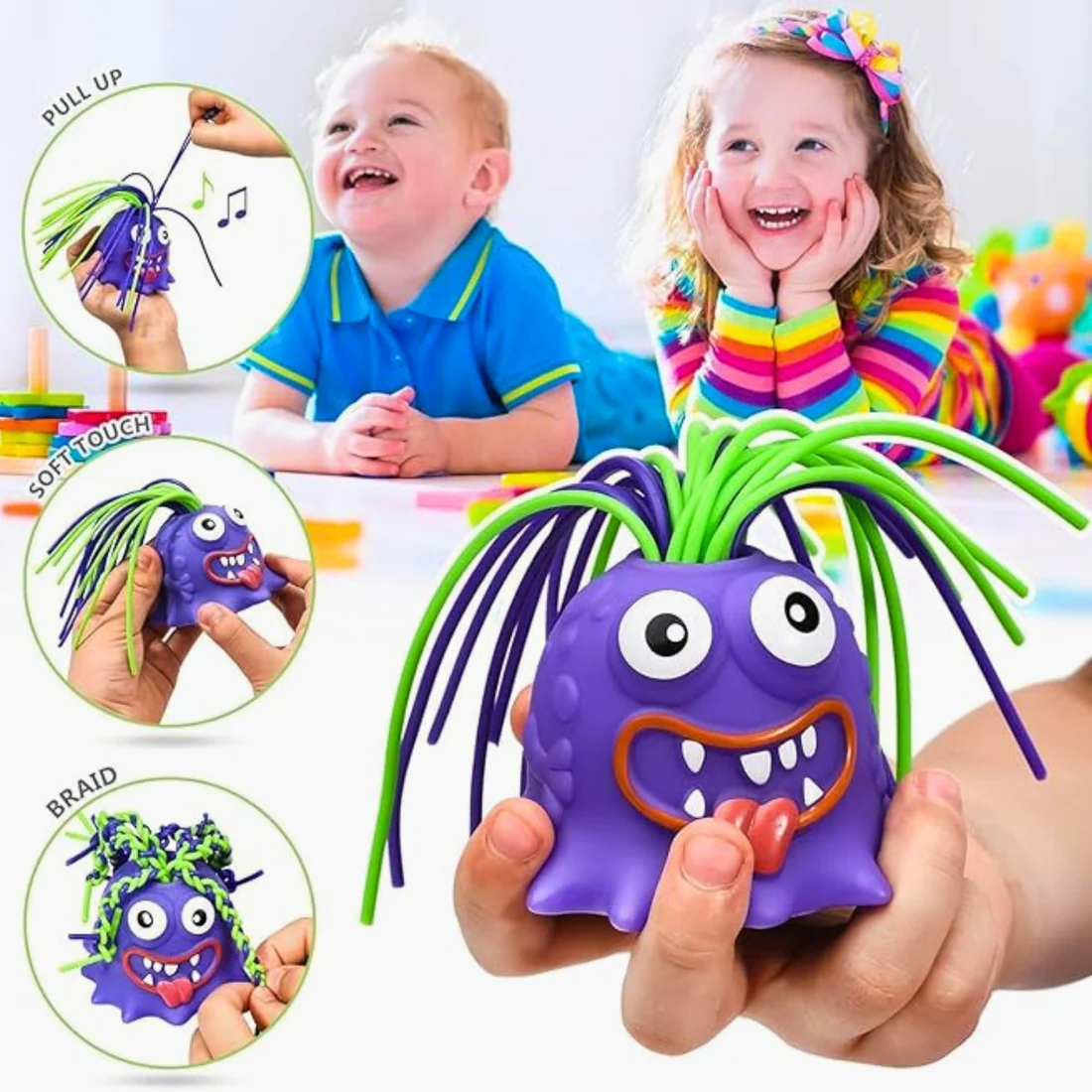 Nuestro juguete anti estrés Scream Monster es ideal para liberar el estrés de forma divertida. Al tirar de su pelo, genera distintos efectos de sonido que expresan emociones, ayudando a reducir la tensión. Con seis sonidos interactivos y colores vibrantes, este juguete no solo entretiene, sino que también proporciona una experiencia relajante y catártica. Perfecto tanto para adultos como para niños, es una opción versátil para aliviar el estrés en cualquier momento y lugar, ya sea en el trabajo, estudio o en casa.